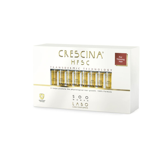 Crescina is the first dermocosmetic treatment in ampoules capable of addressing the phenomenon of hair loss. Thanks to the patented Transdermal Technology, Crescina reactivates the physiological growth of hair in areas of the scalp with hair loss, acting effectively on hair follicles that are not completely atrophied.