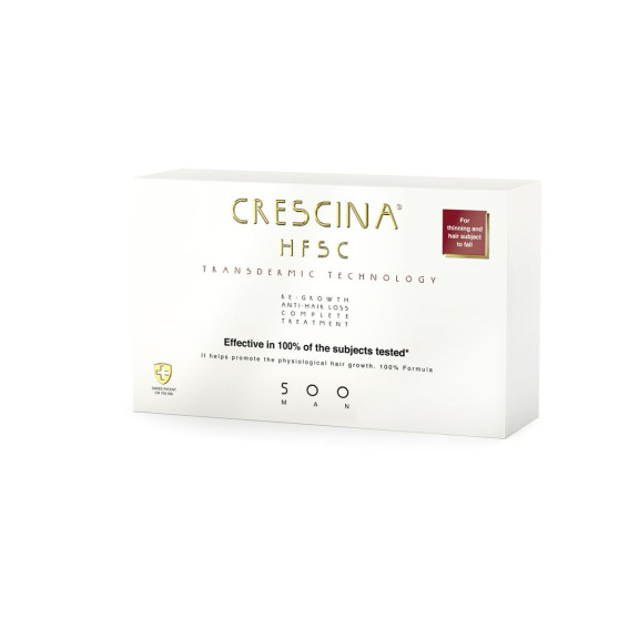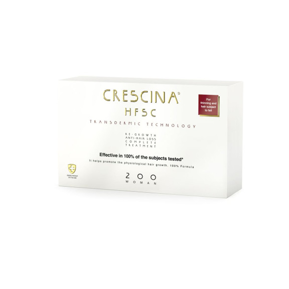 Crescina HFSC Complete treatment concentrated in a single box: Crescina Transdermic Re-growth HFSC vials, to help counteract hair loss by supporting the activities of the hair bulb to promote physiological hair growth, and Crescina Anti-loss vials, to prevent hair loss premature hair. Specific formulations for Men and Women, it is available in three different doses to choose from depending on the stage of hair loss.